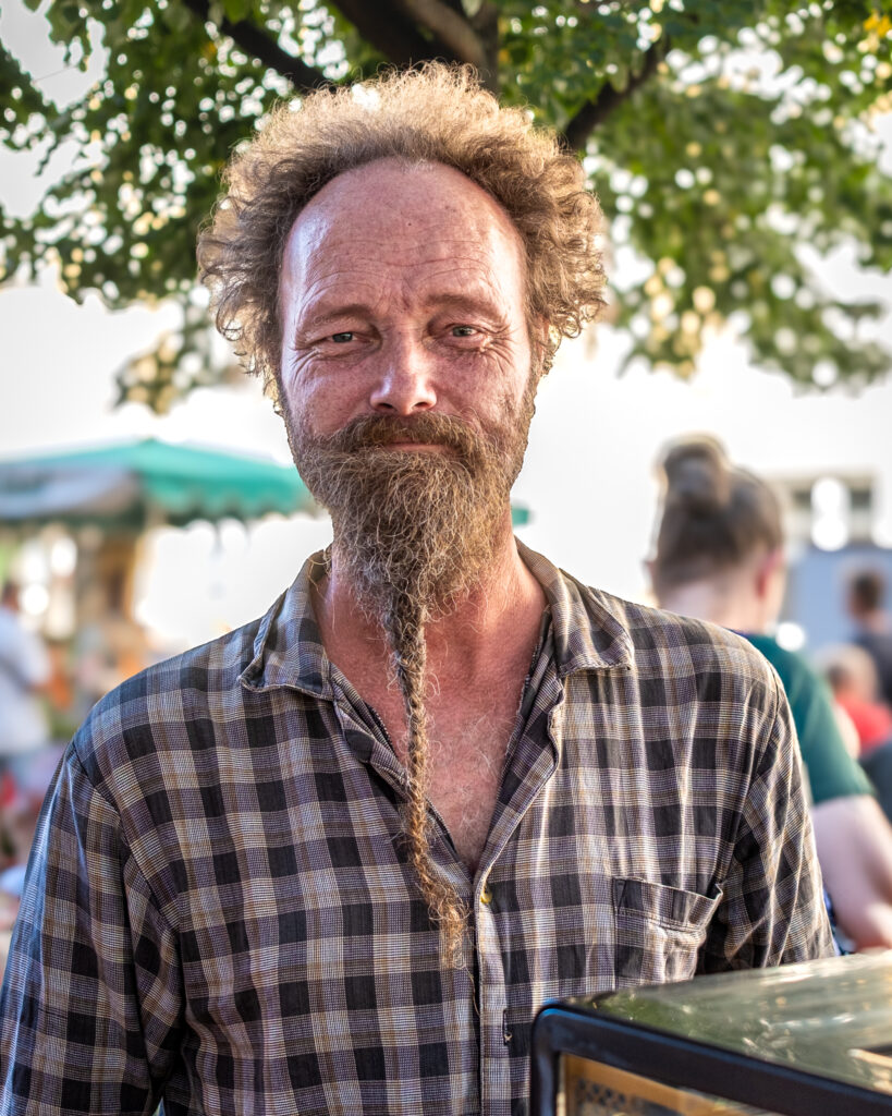 Meistens frage ich mir persönlich interessant erscheinende Menschen aus der spontanen Situation heraus, ob ich ein Foto von ihnen machen darf. Oft übergebe ich dabei meine spezielle Visitenkarte, falls der Protagonist später an dem Ergebnis interessiert ist.