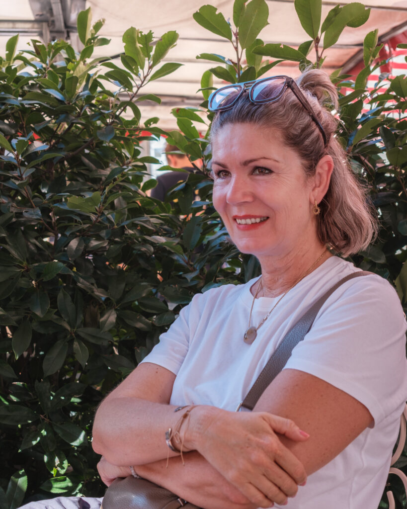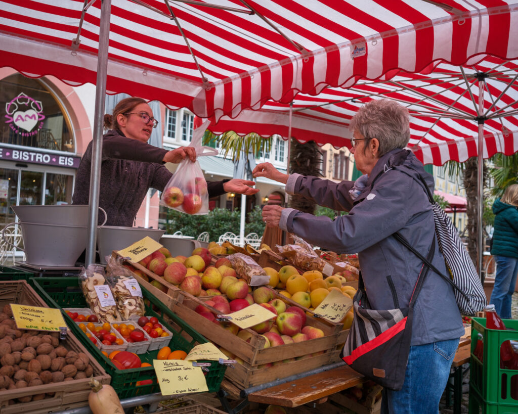 Als wir vom Markttrubel erschöpft im Café eine kleine Pause brauchten, war unsere aufmerksame Tischnachbarin zweimal blitzschnell zur Stelle, als mir nacheinander meine Handschlaufe und mein Ansteckmikro zu Boden fielen.