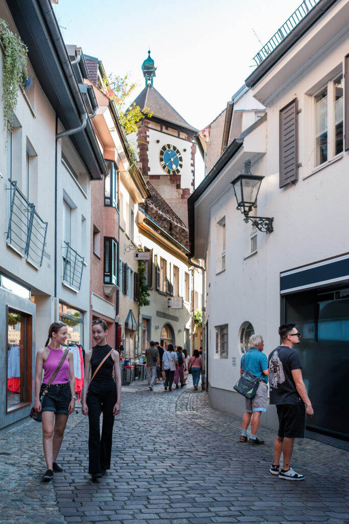 Neben den Einkaufsstraßen sind die ehemaligen Stadttore und kleineren Straßen und Gassen in der Altstadt mit den Bächle für uns besonders interessant. Restaurants, Wirtshäuser, Cafés und individuelle Läden sowie das gemachte und das Publikum machen die Stadt sehr charmant.