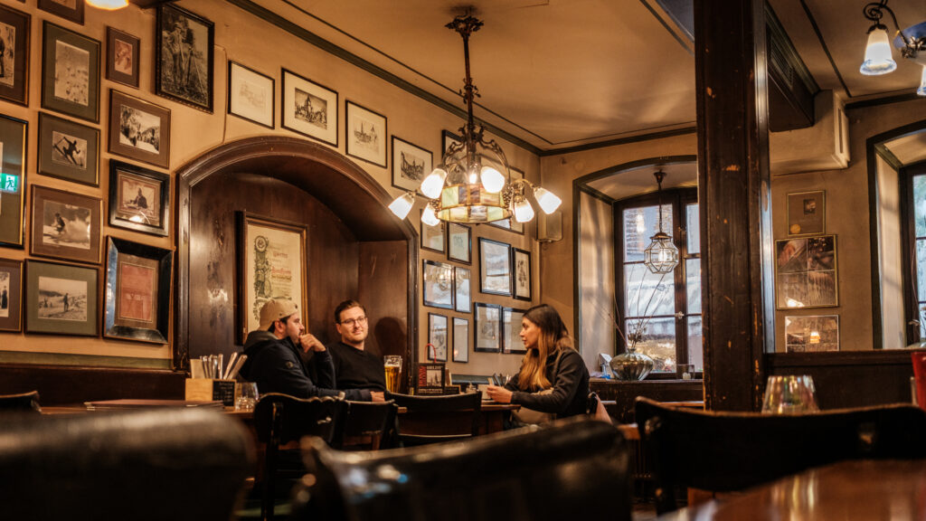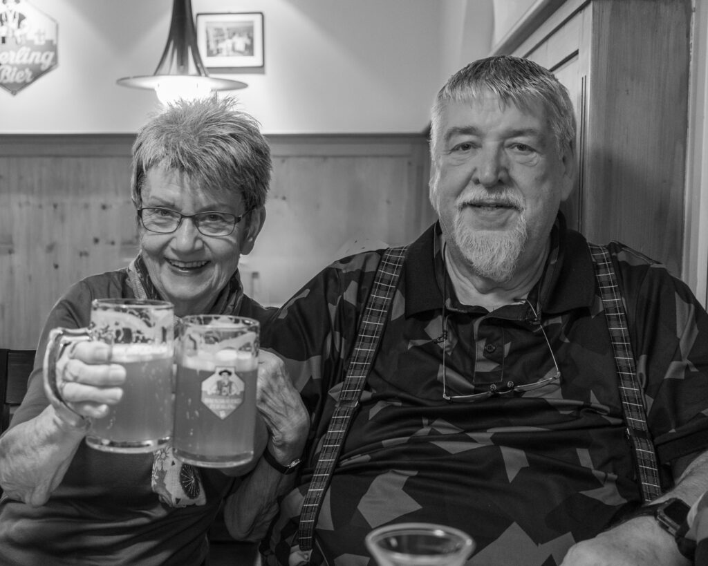Im beliebten Café Jolie lernten wir zufällig Caspar kennen, der dort zur Probe für einen möglichen Aushilfsjob gearbeitet hat. Einige Tage später waren wir mit ihm und einigen seiner Kommilitonen auf ein, zwei Bier in der Hausbrauerei Feierling verabredet und um ein paar Gedanken auszutauschen, Geschichten zu erzählen und zwischendurch ‘ne Runde Doppelkopf zu spielen. Ein unterhaltsamer Abend, sehr zu unserer Freude, zumal unsere Kontakte zu jüngeren Menschen spürbar nachgelassen haben, seit dem wir nicht mehr aktiv Musik machen. – Euch Allen (Anja, Moritz, Moritz, Simon, Caspar) herzlichen Dank für den schönen Abend.